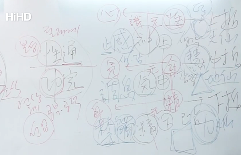 힘이 생겨요. 하느님처럼 힘이 생겨요. 능력이 생. 게 이 능력에는 선을 실천하는 능력이 제일 큰 거잖아요. 여러분 그 에너지체 만드는 능력도 능력이고 선을 실천하는 능력도 능력입니다. 예. 인의예지신 6바라밀 잘 하는 도덕적 능력도 능력이고 여러분의 영적인 몸을 만드는 능력도 다 능력이에요. 예. 다 여기 이 정력에서 옵니다. 그 다음에 이 생명력은요 여기는 예, 지혜혜자를 써서 慧를 얻는다고 돼 있고. 여기까지 신선이 공부하면 힘이 생겨요. 처음에. 그 다음에 지혜가 생겨요. 기운을 조절할 줄 아니까 이제, 우주 만물은 기운으로 굴러가는데 기운을 다룰 줄 알았으니까 지혜가 생겨요. 그런데 아직 덕이 있다고는 안 해요. 덕은요 여기서(性) 생기죠. 본성을 다 알아야 여러분 인의예지신의 덕을 구현할 수가 있죠. 예. 이해, 이해되시죠? 이렇게. 공부가 이렇게 진행됩니다. 그래서 이 힘은 땅을 닮았고, 중간엔 사람을 닮았고, 하늘을 닮았다고 하는 거예요. 天仙은 하늘을 닮았다. 여기 이거(人仙□, 地仙△)는 반댑니다. 이건. 여기는 여기선 사람 중에 신선인데 왜 여긴 사람이 아니고 땅이냐. 이 닦은 거는 이 땅적인 힘을 닦은 거예요. 좀 다른 얘기예요. 天仙 人仙이랑은. 저 정신 없죠. 자, 下中上丹田이 있습니다. 요 세 개를 잘 관리하는 거예요. 관리 하면 하단전 먼저 닦고 그 다음에 중단전 닦고 상단전 열어서 이제 사단, 이 개발은, 개발하다 보면 이제 하나씩 먼저 하단전 열리고 상단전 열리고 그 다음에 중단전 열리고 다 이제 이런 식으로 진행 될 수 있지만 지금 그 각각의 의미를 정확히 찾아가는 데 있어서는 하단전이 먼저, 땅적인 게 먼저 닦이고 이 중간, 중단전, 또 이 사람적인 게 닦이고 마지막에 하늘적인 게 완, 완전히 열리면 우리가 이제 온전한 이 철인이 될 수 있다.
