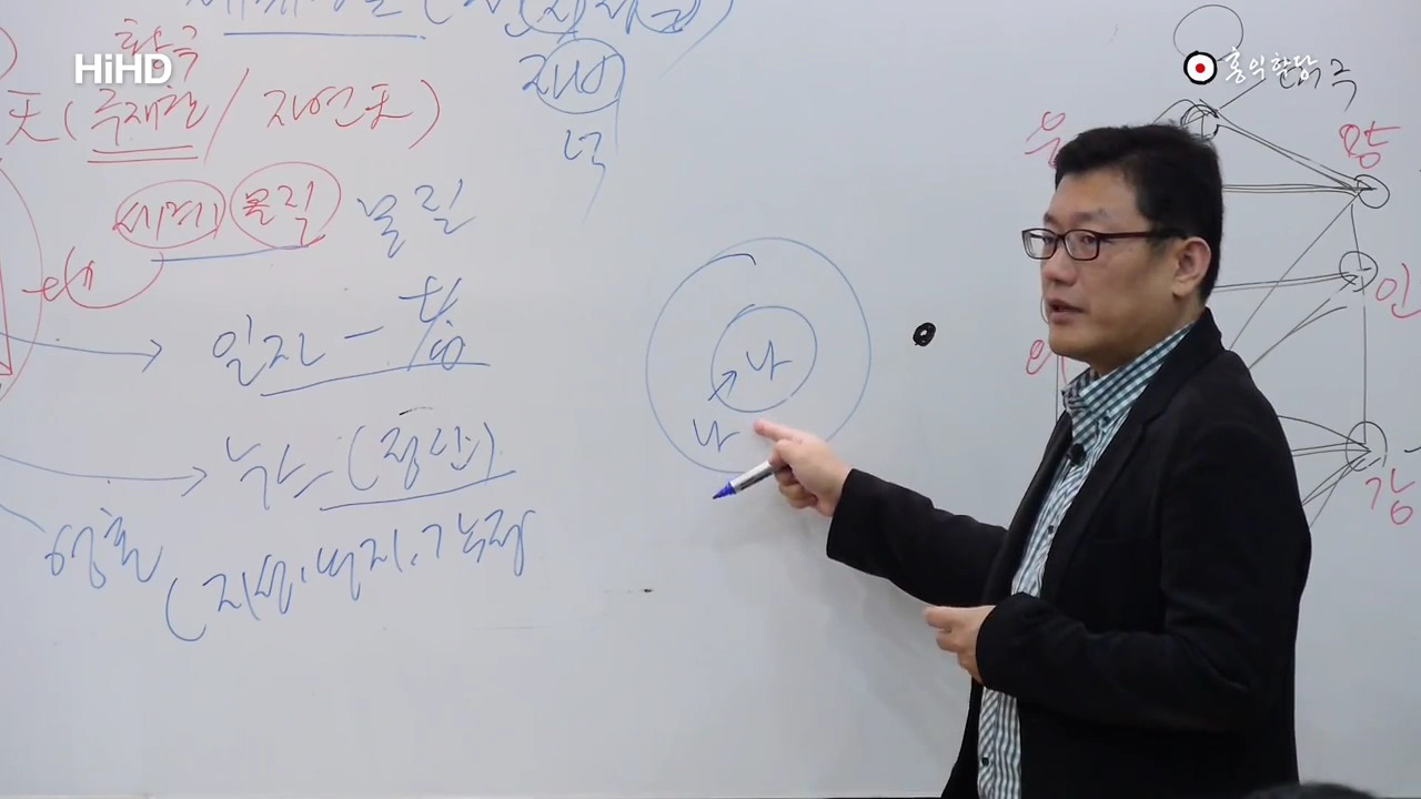 일자 설명할 때 순수한 존재, 누스 설명할 때 자기가 자기를 들여다 보면서 이렇게 성립된 그러면서 원주, 원의 중심인 상태. 그래서 플로티누스 어떻게 설명한지 아세요? 일자는요 원의 중심 그 자체. 누스는요 일자가 반성해서 난. 누스는 원의 중심자리. 영혼부터는요 영혼부터는 여기서(원의 중심자리) 이 점 안에 이 원주까지 이제 원주에 이르는 수많은 선이 이제 내포된 점. 이렇게 설명해요. 그냥 있음, 만물의 있음, 만물과 연결된 수많은 그런 선을 갖고 있는 있음. 이런 식으로 해서 설명까지 해요. 그러니까 이게 철학자들은요 다 이게 지금 알고 있는 겁니다. 그래서 그냥 하나. 여러 개를 포함한 하나. 누스는. 그리고 이제 영혼은 진짜로 이제 그 여러 개와 다수와 관계를 맺고 있는 하나. 그럼 이제 영혼까지 내려와 버려요. 그럼 이게 무극 태극 황극입니다. 일자 누스 세계영혼이 무극 태극 황극이랑 정확히 일치해요. 그래서 이런 분들도 있습니다. 근데 그분 공부법이 뭐냐. 우주를 가 봤냐. 아니에요. 이분도 무아지경에 삼매에 든 체험이 일생에 몇 번 있었대요. 이 분도 늘 들었던 건 아니에요. 그러니까 여러분 밀리지 않는다니까요. 이런 위대한 철학자도 내 일생에 세 번인가 몇 번 크게 삼매에 들었. 누구는 그 세 번 정도 삼매에 든 것만으로 철학을 만들어요. 체험을 정확히 한 거죠. 누구는 백날 삼매에 들어도 몰라요. 아까 좀 고요했다가 시끄러웠다 이것만 알아요. 마음이 고요했다 시끄러웠다. 예. 아무튼 이게 짐 안타깝죠. 그래서 이게 그래서 결국 그분들도, 서양 철학자들 제가 다 뒤져봤단 말이에요. 얼마나 공부했는지 볼려고.